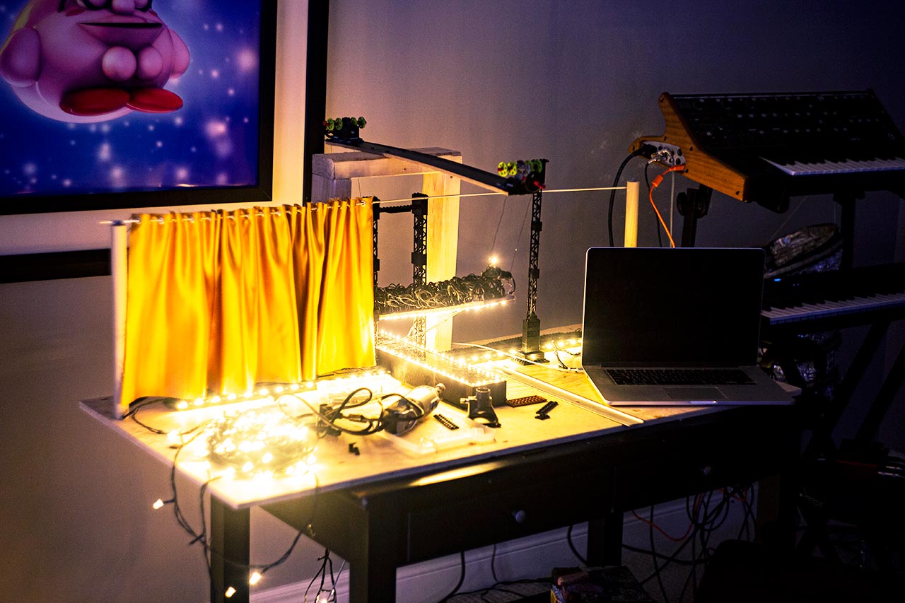 the home studio is great because after a long day of animation you can take a small step to the right and start vibing on the moog